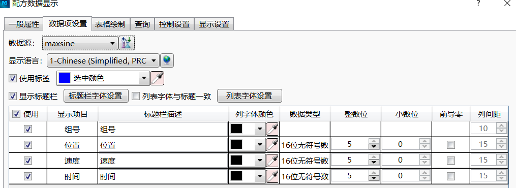 默認(rèn)長度為 1,點擊后面的“數(shù)據(jù)項”按鈕或者上面的“數(shù)據(jù)項”的 tab 頁,可以修改每一組配方的長度。此處的“配方長度”是指每一組配方占用的字?jǐn)?shù)。