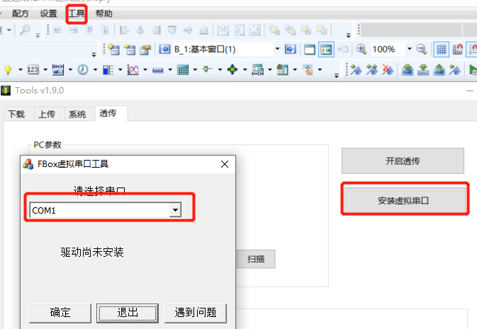 安裝虛擬串口,點(diǎn)擊工具 → 下載 → 透?jìng)?→ 安裝虛擬串口。