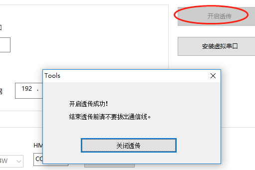 開啟透?jìng)鳎渲煤猛競(jìng)鲄?shù)后點(diǎn)擊開啟透?jìng)鳎藭r(shí)HMI處于傳輸模式下,不能進(jìn)行任何操作,透?jìng)鬟^程中不能關(guān)閉該窗口或者拔出通訊線。