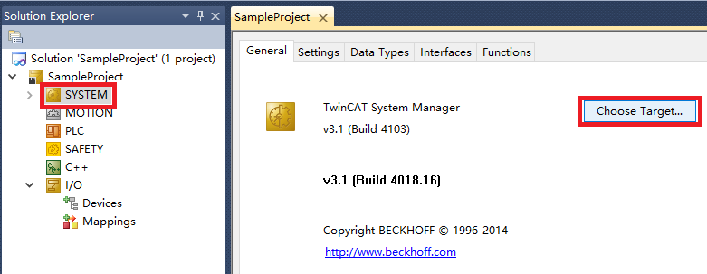 用 PC 鍵盤的“ F8”按鈕,或者在左側(cè)工程欄雙擊SYSTEM,打開界面,點擊“ Choose Target System”: