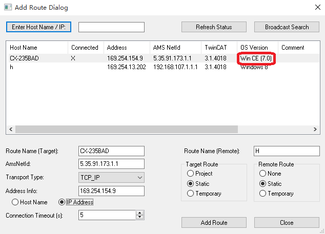 選中目標(biāo)機器:(確定PC的IP地址網(wǎng)段與控制器保持一致)