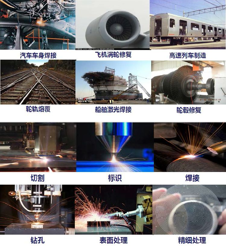 激光加工包含高功率切割、焊接;微加工之鉆孔、劃線、切割、紋理、剝除、隔離等,各種激光加工手段的主要用途有: