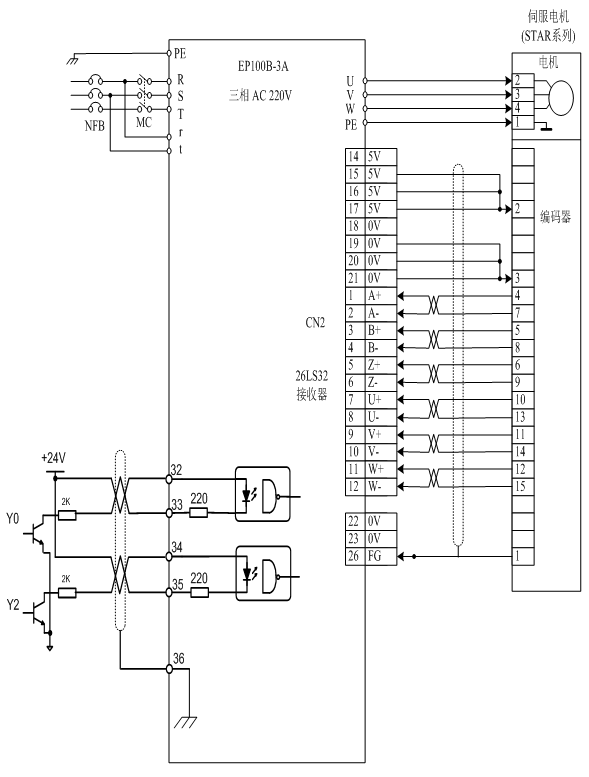 A、正確接好電源線r、t、R、S、T,電機(jī)動力線U、V、W、PE,編碼器線(CN2)。